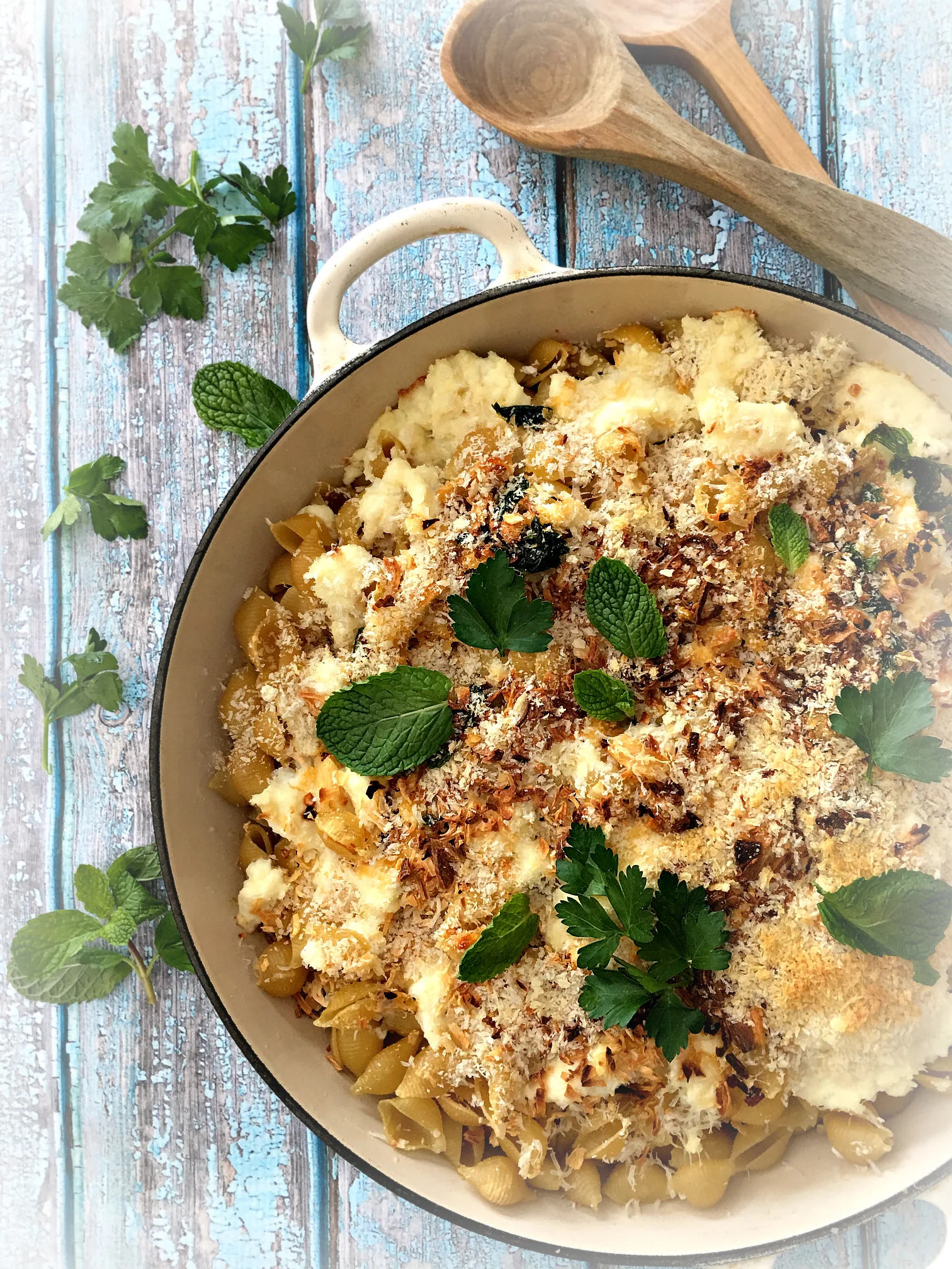 - Serve hot, garnished with more grated cheese, fresh mint, and parsley leaves.